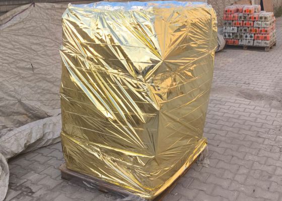 Metalize (Mylar) UV Koruyucu PET Örtüsü, özellikle PET şişelerdeki içeceklerin (su, meşrubat vb.) güneş altında güvenli şekilde depolanması ve taşınması için geliştirilmiş yenilikçi bir çözümdür. PET paletleri, güneş ışığına doğrudan maruz kaldığında ürün sıcaklığı hızla artmakta, bu da içeceklerin kalitesini bozmakta ve plastik ile sıvı arasında zararlı reaksiyonlara yol açabilmektedir.